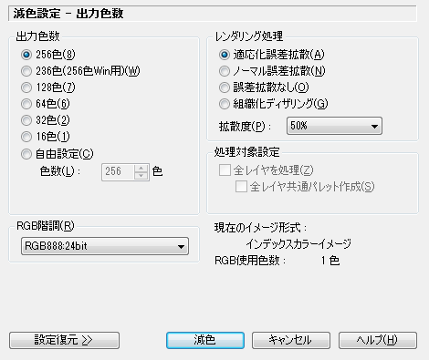 このページに解説のないボタン に関しては、「[減色]ダイアログ」のページをご覧ください。