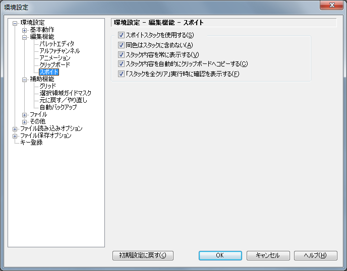 スポイトスタックの内容が変化したとき、スタックの内容を自動的にクリップボードへコピーします。このオプションがOFFのときは、「スタックをクリップボードへコピー」を明示的に実行する必要があります。