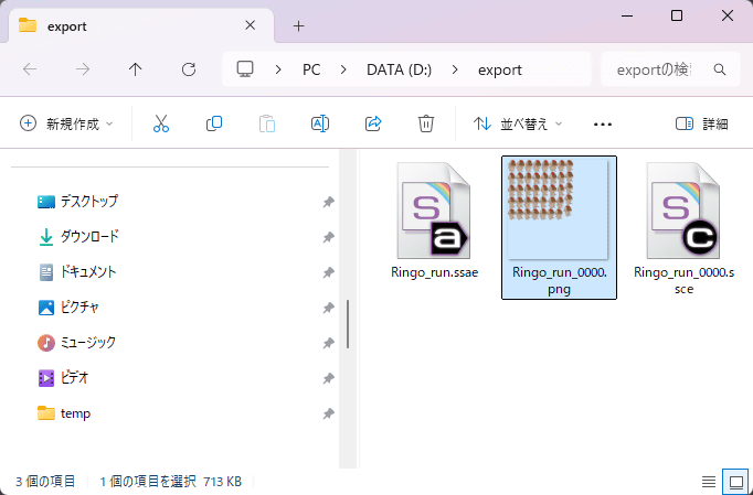 出力後は、画像ファイルと、.ssaeファイルと .ssceファイルが同時に出力されます。